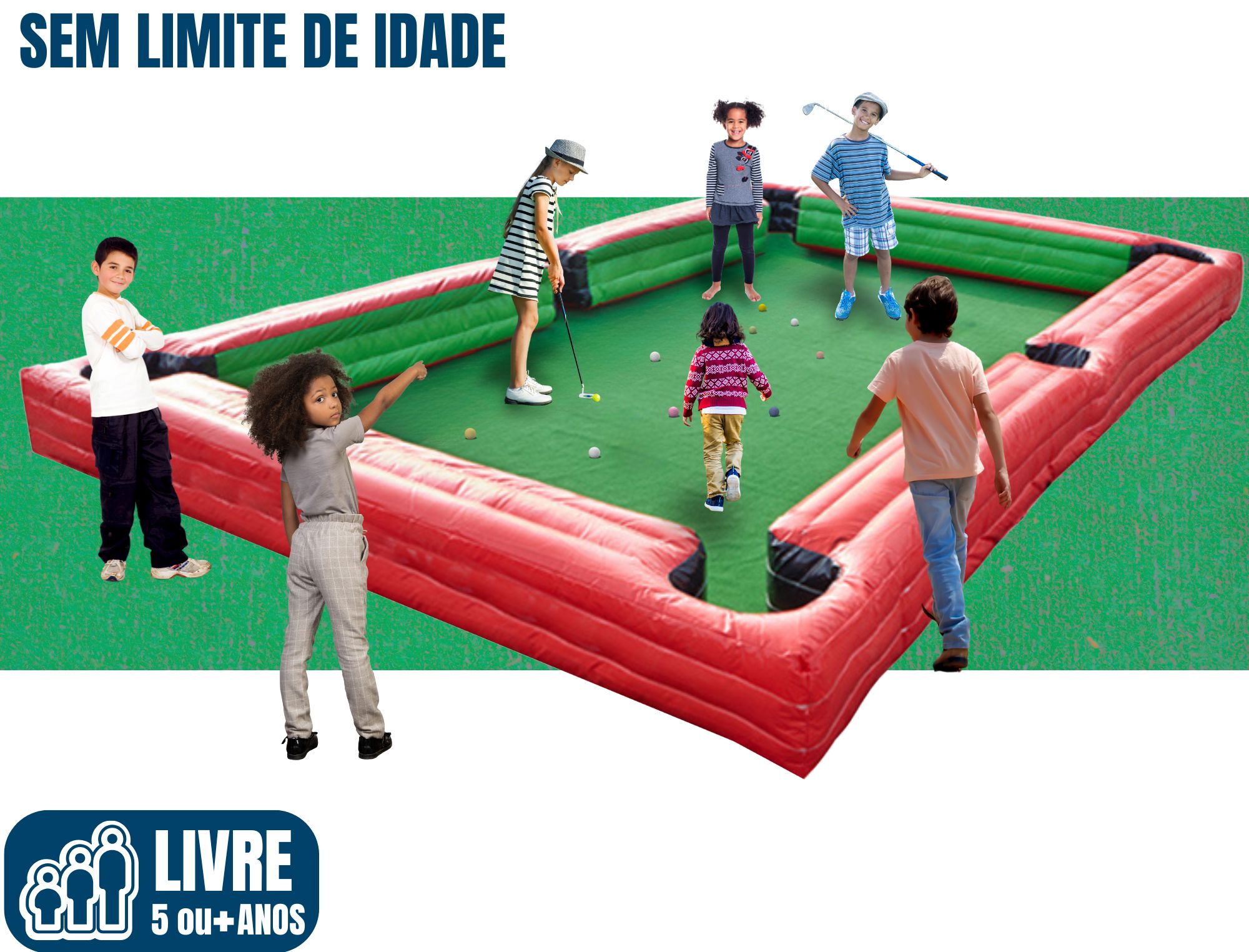 O Golf Inflável é a atração perfeita para quem gosta de um desafio divertido! Com bolinhas e tacos à disposição, os participantes podem mostrar sua pontaria e se divertir tentando acertar as caçapas do campo inflável. A presença de um monitor pode garantir uma partida ainda mais dinâmica e envolvente.