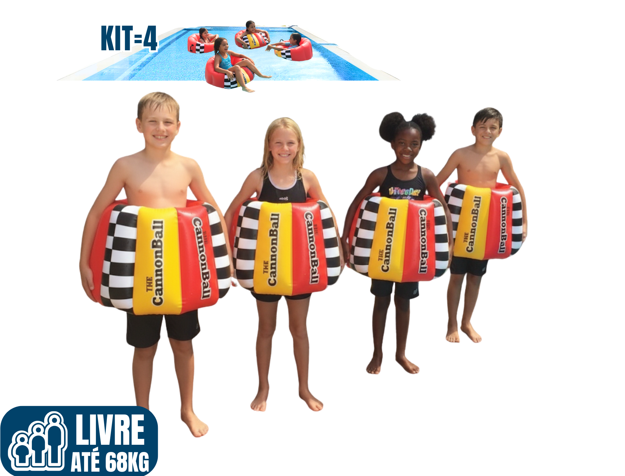 Com a boia CannonBall, você pode se jogar na água como se fosse uma bala de canhão, sem medo de afundar. Elas garantem que a criança flutue de forma segura e estável, proporcionando uma experiência de mergulho segura e incrivelmente divertida. É a combinação perfeita de segurança e muita alegria para os dias de sol!